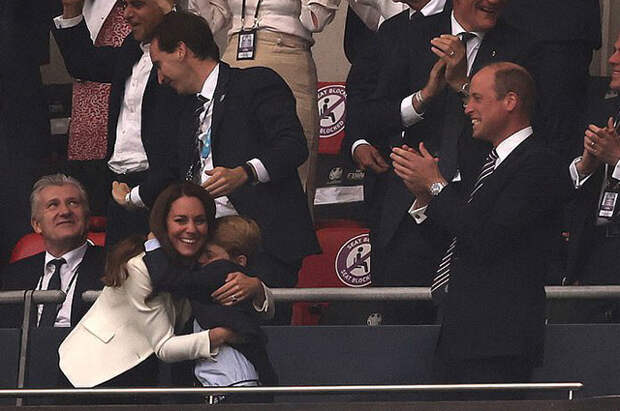 Когда на второй минуте матча британский игрок Люк Шоу забил в ворота итальянцев, Джордж не смог сдержать своего восторга. От внезапно нахлынувшей радости семилетний мальчик искренне рассмеялся, широко раскинув при этом руки, а потом поспешил крепко обнять свою маму Кейт Миддлтон.