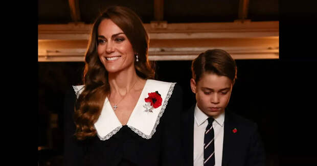 Принц Уильям в этом году не смог присутствовать на мероприятии (он возвращается домой из рабочей поездки в Бразилию), однако на концерт пришли его супруга, 43-летняя Кейт Миддлтон, и старший сын — 12-летний принц Джордж. На Кейт было чёрное длинное платье с белым воротником, по традиции украшенное брошью в виде красного мака — символом Дня памяти.