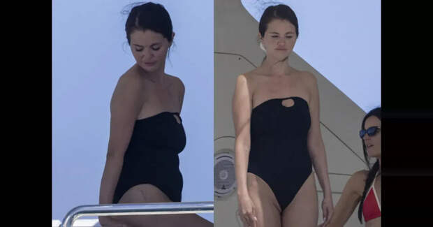 Селену засняли на борту судна в чёрном слитном купальнике — она загорала и веселилась в окружении подружек.