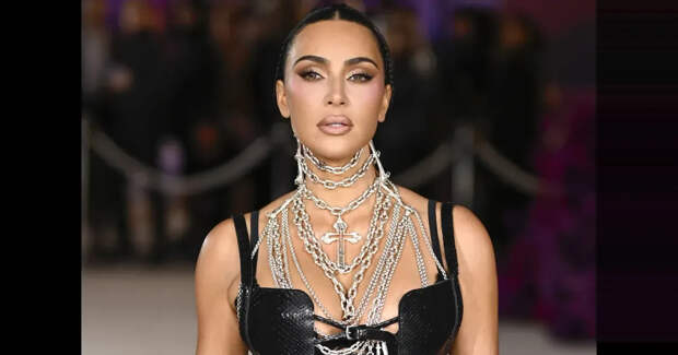 Ким Кардашьян позировала в кожаном корсетном платье Dilara Findikoglu с серебряными украшениями.